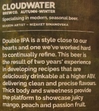 Other Notes: West coast Double IPA. Hops – El Dorado, Ekuanot, Simcoe & Simcoe CRYO