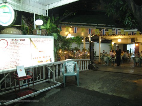 While randomly looking for a place to eat Thai food in the Silom area of Bangkok, we came across this outdoor covered restaurant on one of the side streets. The restaurant actually did have an indoor section, but it seated only maybe 12 people, whereas the bulk of the tables were outside. I have eaten here several times now, and overall, I do prefer sitting outside for the nice atmosphere and lack of al fresco dining in Hong Kong.