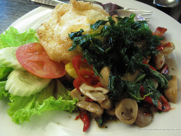 Thai Green Curry with Chicken – The green curry itself was a bit watery, but this seems to be the case with much of the green curry I’ve tried in Thailand. It was good to have with rice and there was a generous amount of chicken given. Still would have preferred to have a thicker sauce though.