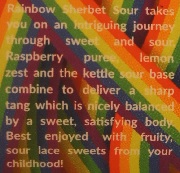 Brewer Description: (from can) Rainbow Sherbet Sour takes you on an intriguing journey through sweet and sour. Raspberry puree, lemon zest and the kettle sour base combine to deliver a sharp tang which is nicely balanced by a sweet, satisfying body. Best enjoyed with fruity, sour lace sweets from your childhood!