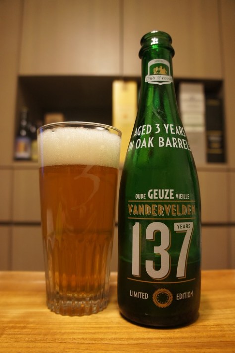 Brewer Description: (from bottle) Vandervelden 135 Oude Geuze is a blend of 1 year old lambic aged on foeders that were previously used for mainly red Brunello di Montalcino wine and of 3 year old Lambic aged on an old Oud Beersel foeder.