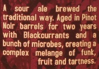 Brewer Description: (from Untappd) Spontaneous fermented beer aged 1 year in pinot noir cask transferred in “Vinification intégrale” cask. Maceration of 7 months with “Gewurztraminer” grapes from Henri Klee Domaine. Concentration 300g/L.