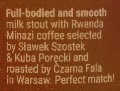 Brewer Description: (from can) Full-bodied and smooth milk stout with Rwanda Minazi coffee selected by Sławek Szostek & Kuba Poręcki and roasted by Czarna Fala in Warsaw. Perfect match!