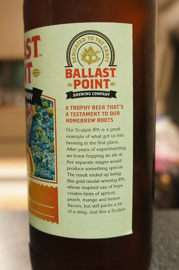 Brewer Description: (from website) Our trophy beer, extra-hopped and unfiltered. Our Unfiltered Sculpin IPA packs extra hops into every sip, enhancing the classic Sculpin notes of fresh apricot, peach, mango and lemon with a slight haze and less bitterness. Freshness is key to every beer, but especially true for this extra-hopped IPA—store cold and drink soon.