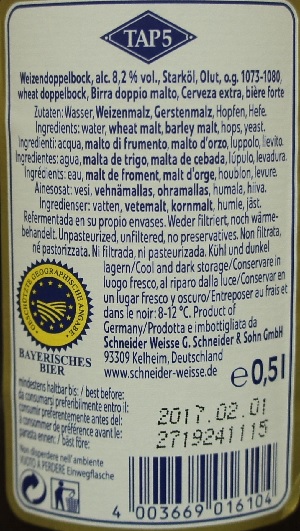 Brewer Description: (from website) Our light-coloured, spicy single-bock, “Vitus” is saturated with fine yeast and a creamy foam. It is a specialty with a round character based on the extra long storage time. The fruity smell of dried apricots joins aromas of citrus, cloves and hints of banana. Full-bodied and sparkling with an effervescent mouthfeel. Thus, the Vitus does not taste like a typical Bock beer but more like a noble, fruity wheat beer. Perfect with red meat, strong cheese and also able to guide desserts. Brewed according to our centuries-old brewing tradition on the Weihenstephan hill.