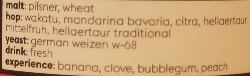 Taste: Clove, banana, wheat, honey, pear, moderately sweet and lightly spicy.